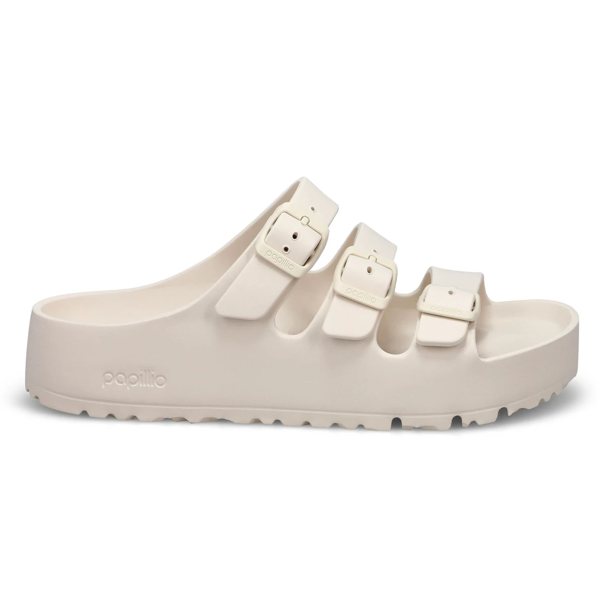 Step into laid-back luxury with the Florida III Platform EVA 3 Strap sandal from Birkenstock. Designed for all-day comfort and casual cool, this versatile platform sandal features lightweight EVA construction and three fully adjustable straps for a customizable fit. The contoured footbed supports your natural stride, while the chunky platform sole adds height without sacrificing ease. Perfect for beach days, errands, or everyday wear—this is effortless style with a modern edge. Made in Germany. Narrow Width.