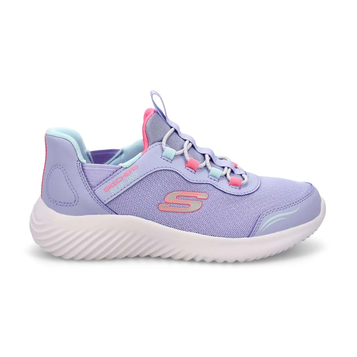 Effortless comfort comes with the Hands Free Slip-ins: Bounder lavender sneaker from Skechers. Designed with Skechers exclusive Heel Pillow, this slip-on style features a mesh and synthetic upper with stretch laces, Skechers adaptive closure for a customized fit. A cushioned Skechers Air-Cooled Memory Foam insole. Flexible traction outsole. Machine washable.