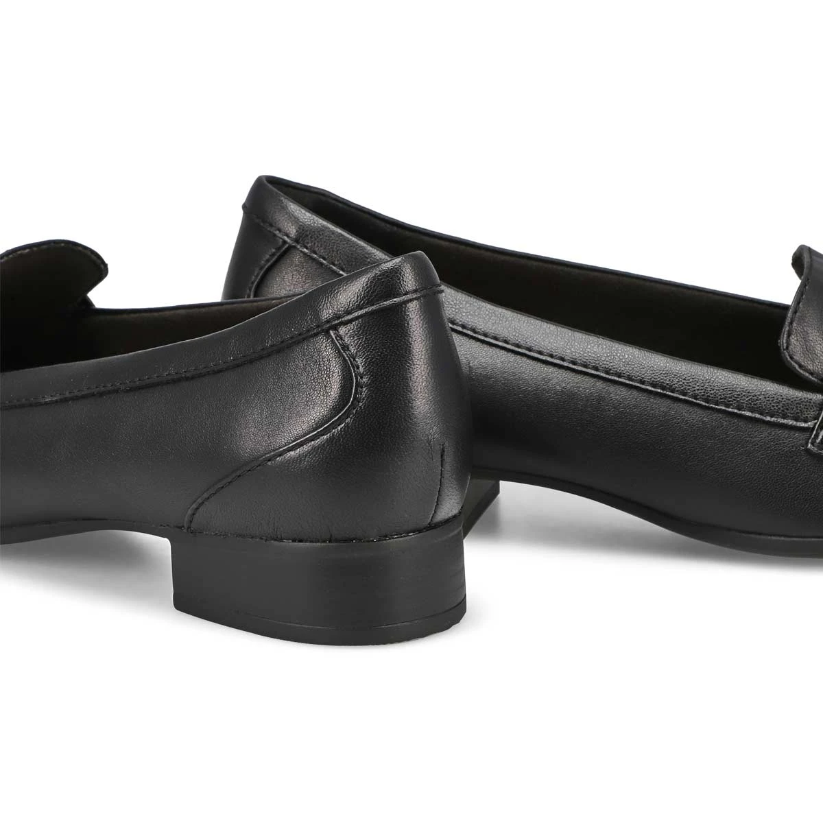 A streamlined profile perfect for everyday wear, the slip-on shoe Juliet Bay black dress loafer combines Clarks quality craftsmanship with classic design details. Defined by super-soft leather uppers for ultra-versatile styling, our signature underfoot cushioning and a low stack-effect heel deliver the ultimate combination of fashion and function. Contemporary stacked-effect low heel.