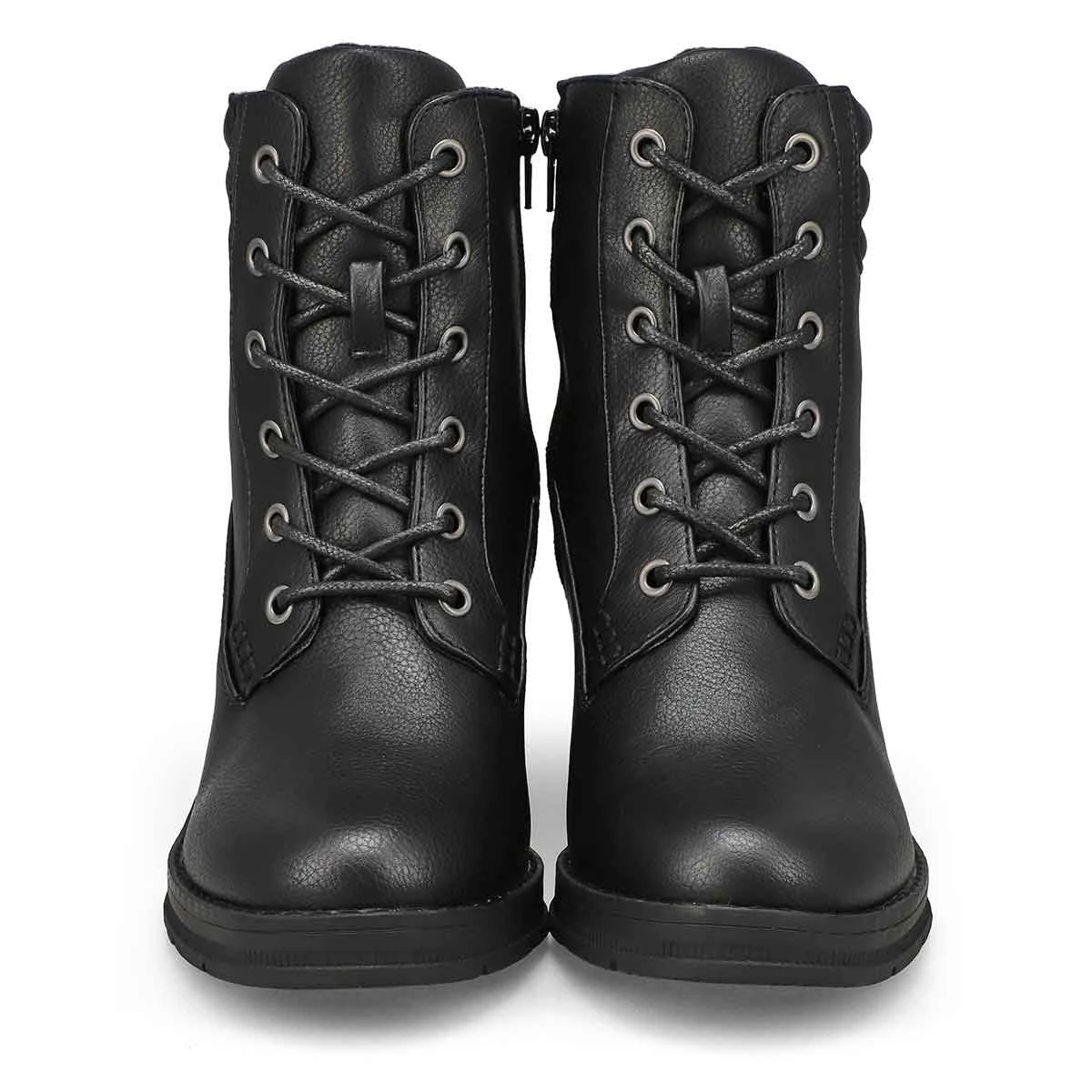 The Felicity Platform black lace up faux leather synthetic leather boot from SoftMoc is the perfect boot choice whether your outfit is demanding a dressed up look or weekend casual. Featuring a cushioned footbed to help create all day comfort. The Felicity Platform boot is designed with a durable rubber outsole.
