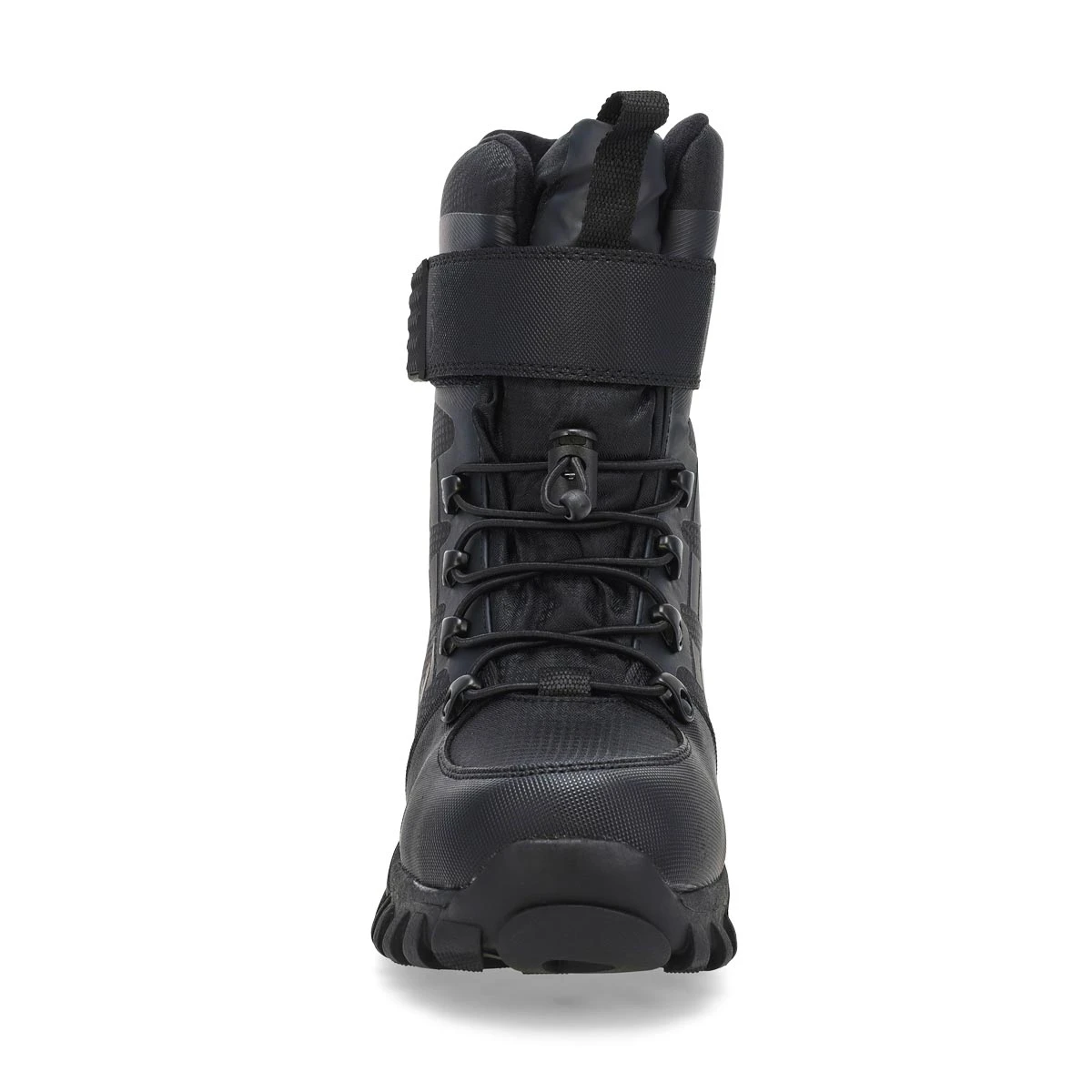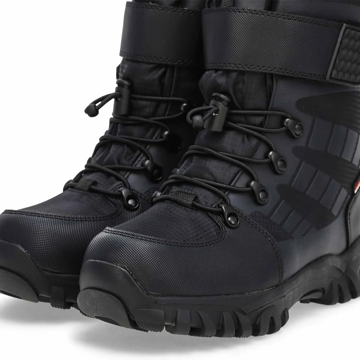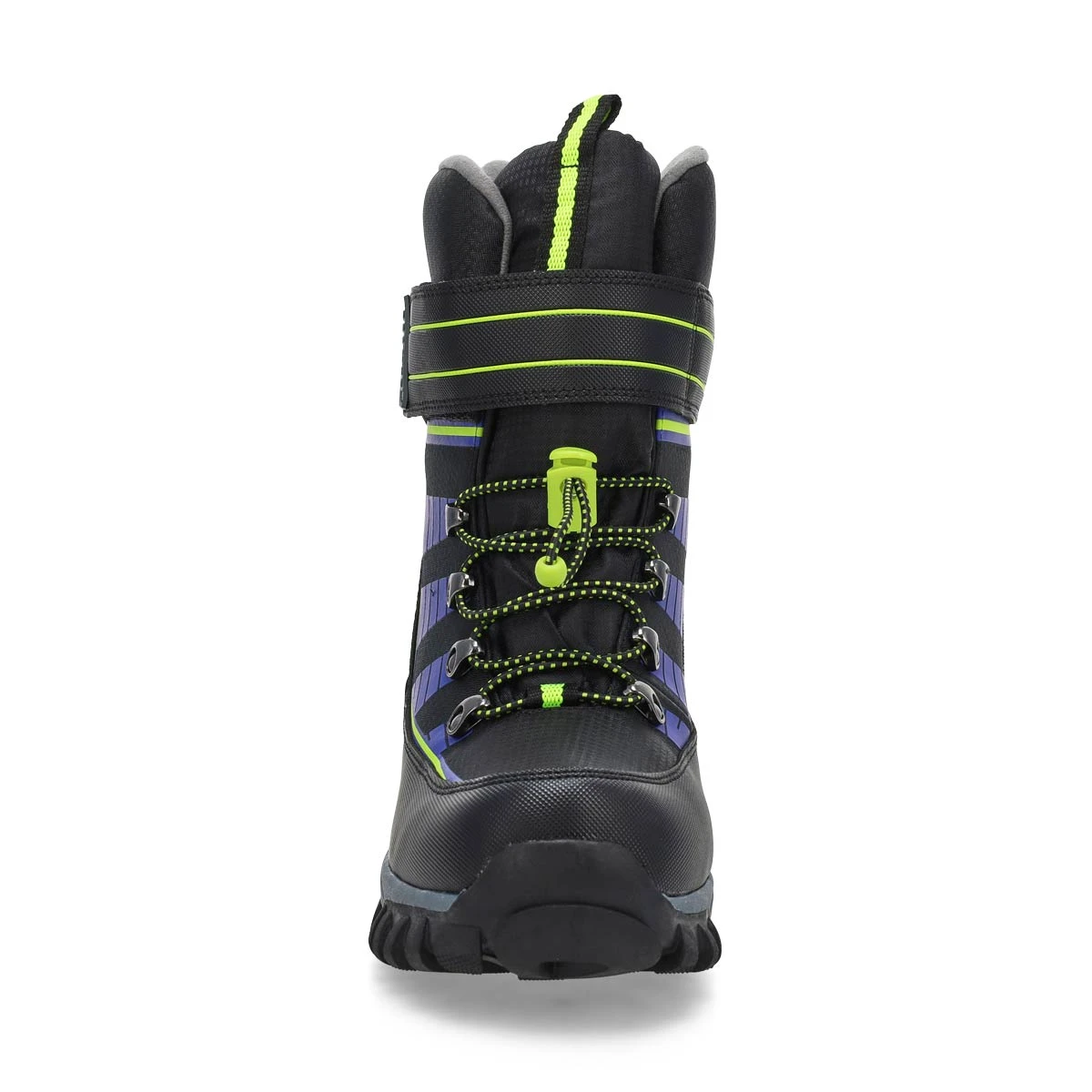 The Lucus waterproof black/ lime boot from SoftMoc featurers a waterproof nylon upper with soft, sherpa lining. Adjustable bungee lacing system with hook & loop closure for an easy on/ off. Slip resistant traction outsole. Built with lightweight construction in mind. When snowflakes fall, this boot is the one that will keep their little feet warm and comfy.