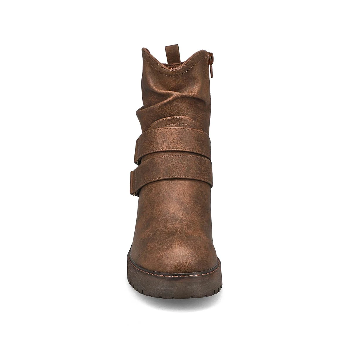 The Nikki Block Heel fawn casual boot from SoftMoc is the perfect boot choice when your outfit is demanding a casual or weekend casual look. Featuring PU leather upper. A lightly cushioned footbed with lining helps create all day comfort. The Nikki Block Heel boot is designed with a durable TPR outsole.
