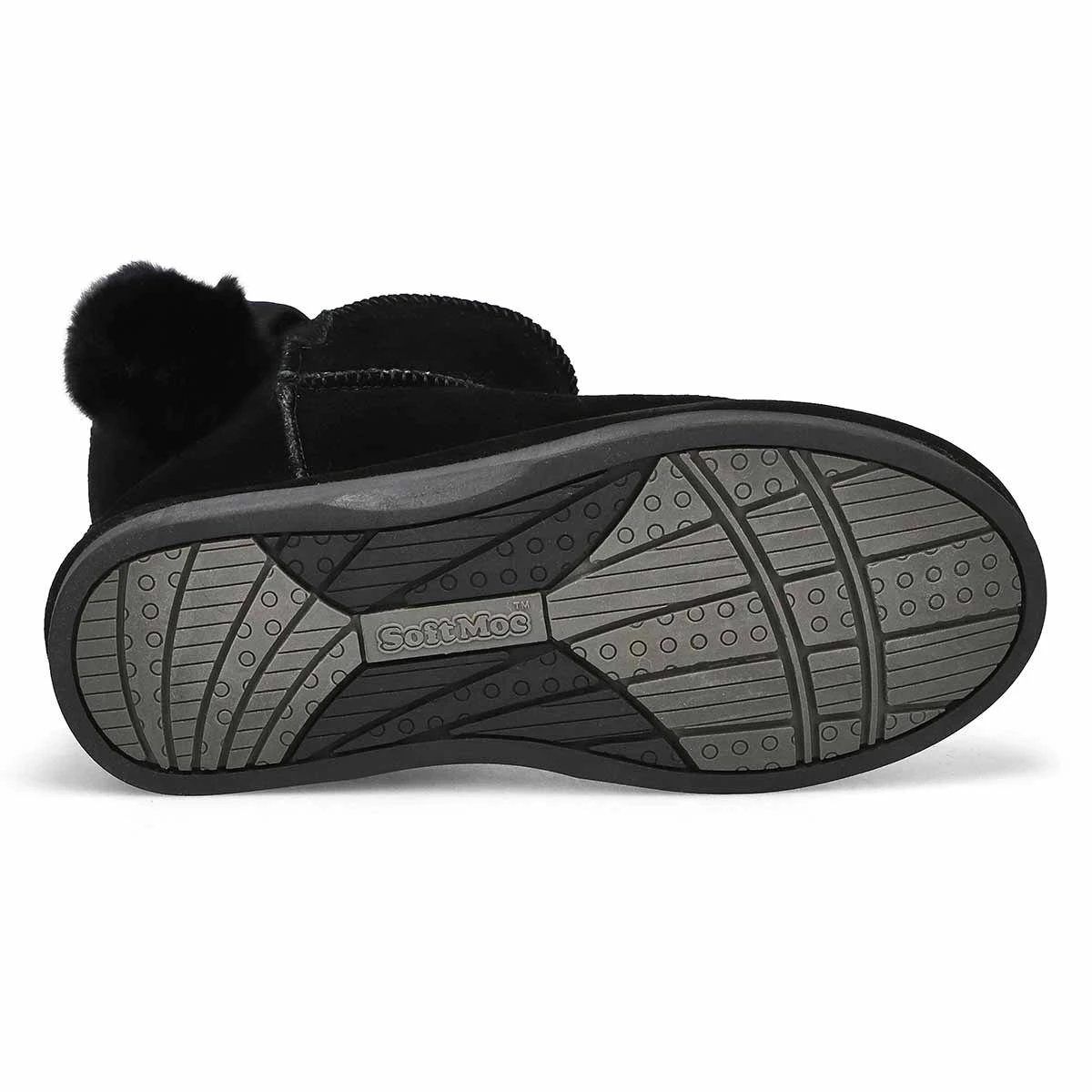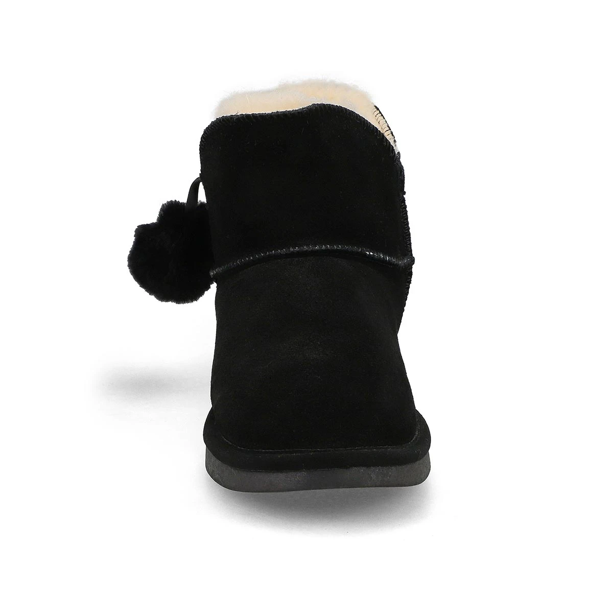 - Suede upper with decorative pom pom