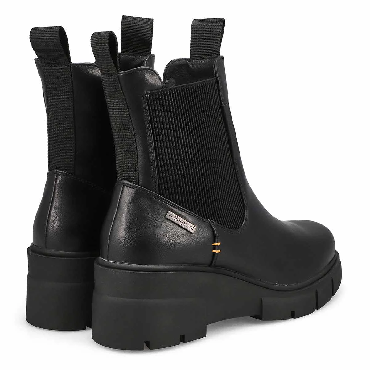 The Wedge 01 Vegan waterproof boot from by SoftMoc Vegan is a stylish silhouette to your wardrobe. Featuring a vegan friendly, smooth PU upper with a waterproof membrane. Elastic goring with a side zipper for easy on and off. DurableTR Outsole. You will want to make the Wedge 01 Vegan boot part of your must-have list for this season!
